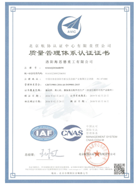 通過(guò)ISO9001質(zhì)量管理體系認(rèn)證并取得證書。